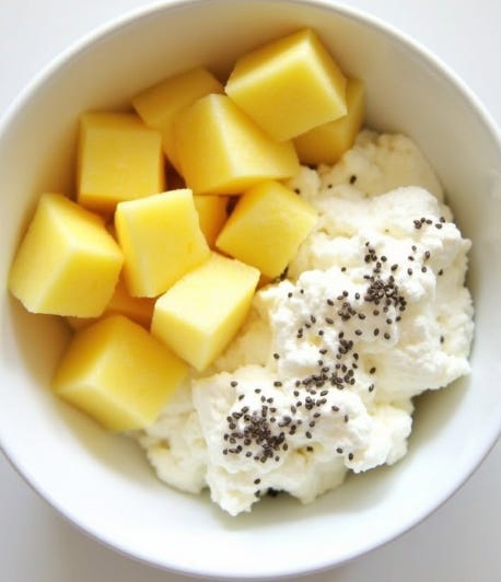 Snack (if hungry): Cottage cheese + pineapple = 20g protein