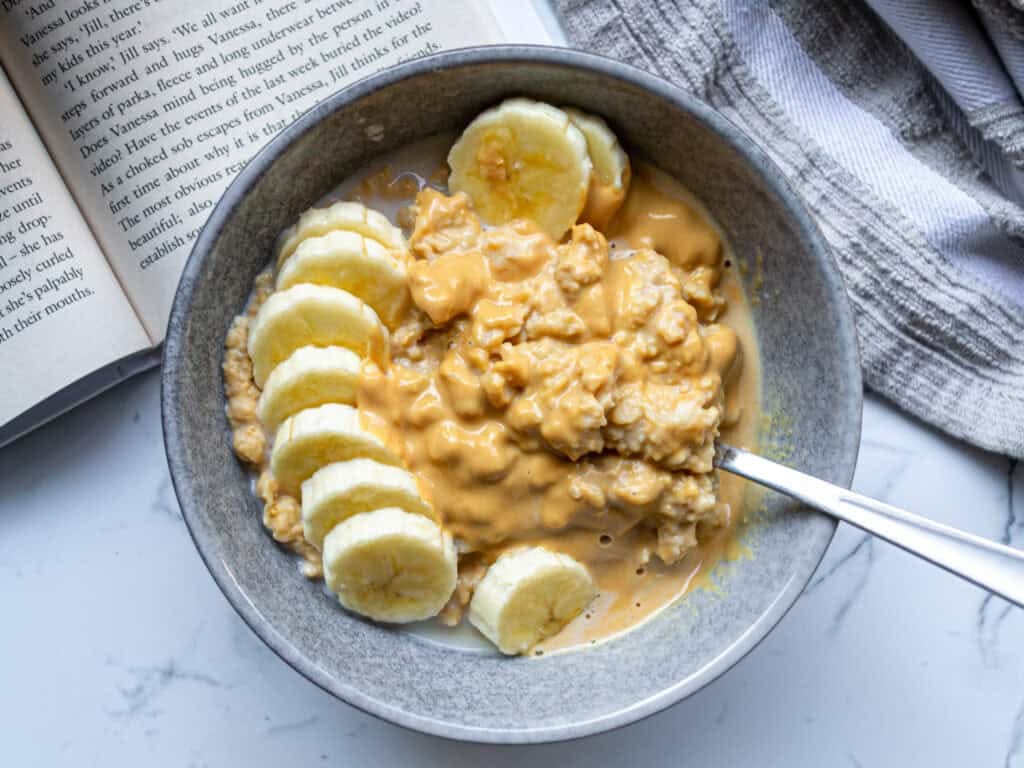 Protein oats (oats + protein powder + banana)